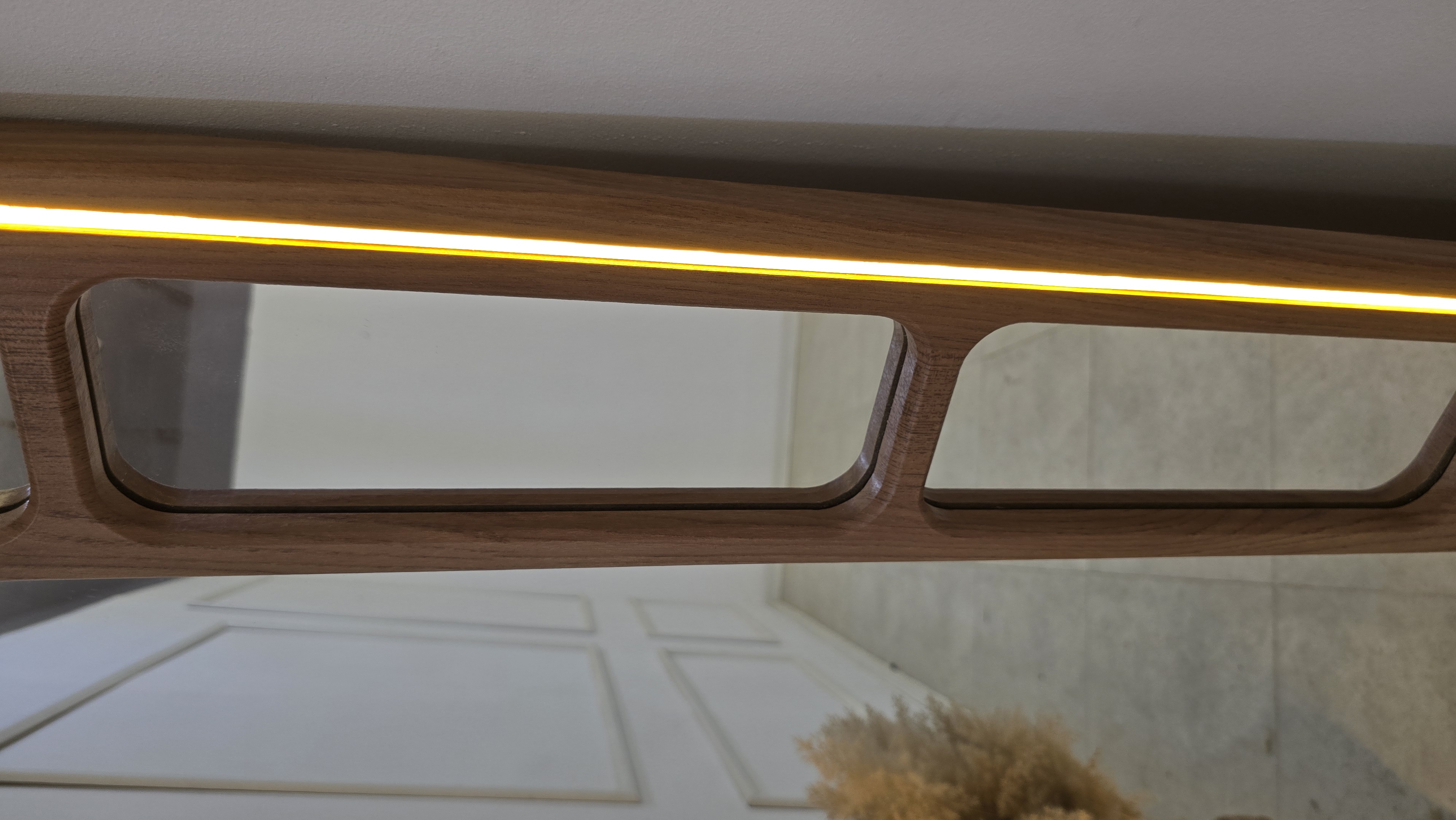 کاربرد: قاب چوبی آینه و فضاهای لوکس که جلوه طبیعی، عمق رنگ و دوام مهم است.